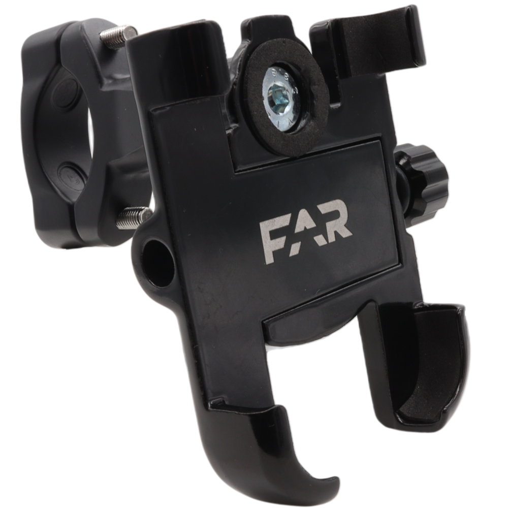Elegante, solido e progettato per un utilizzo intensivo, il porta smartphone universale da manubrio FAR è la soluzione ideale per chi desidera mantenere il proprio telefono sempre stabile, visibile e protetto durante la guida. La struttura è interamente realizzata in alluminio, lavorato con precisione e rifinito con anodizzazione nera, per garantire massima resistenza meccanica, durata nel tempo e un’estetica tecnica perfettamente integrabile su qualsiasi tipo di moto o scooter.