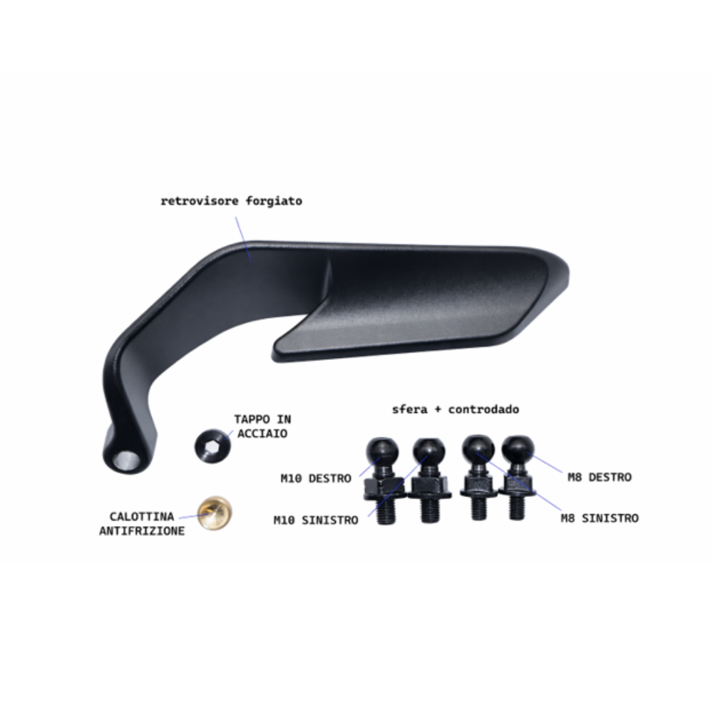Retrovisore Destro Universale a Manubrio Racing – M10 X 1.25 SX – Retrovisore FAR Italian Design