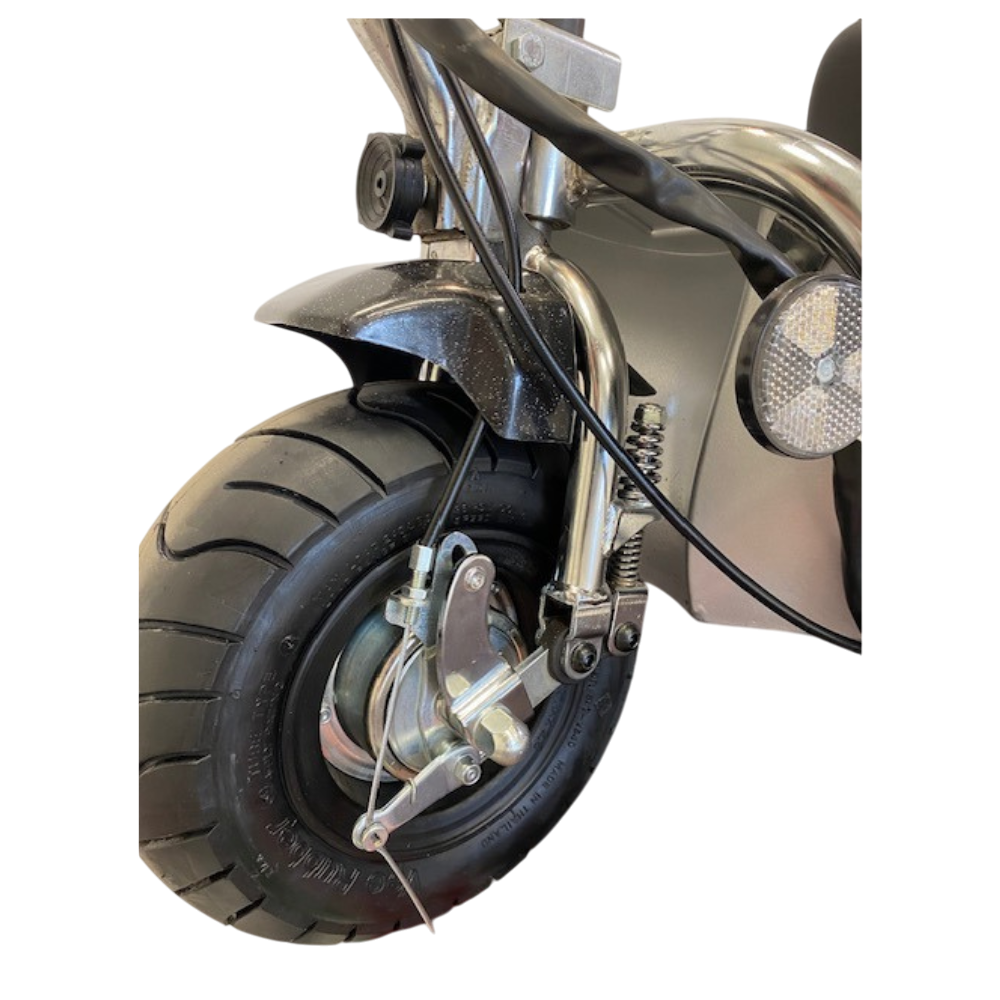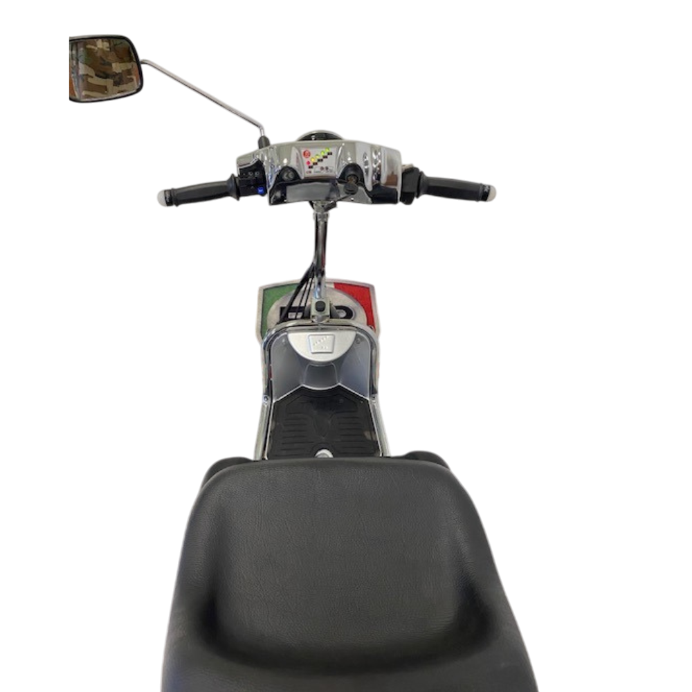 Il suo design vintage anni ’90 si fonde con tecnologie moderne per creare un veicolo compatto ma estremamente robusto. Il telaio in acciaio cromato ad alto spessore, la forcella ammortizzata e le gomme maggiorate assicurano un comfort di guida eccellente anche su pavimentazioni irregolari. Ogni dettaglio è curato artigianalmente, espressione della migliore tradizione meccanica bolognese.