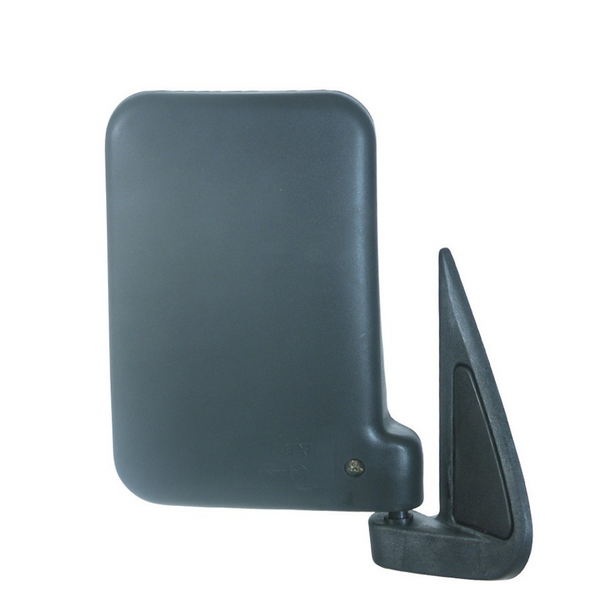 Left-hand rearview mirror with original attachment, designed to ensure perfect compatibility with the entire Piaggio Porter range (petrol, diesel, electric) and Quargo. The robust construction and black finish make it an ideal solution for replacing a worn component, maintaining the vehicle's original aesthetics and functionality. Product approved for completely safe road use.