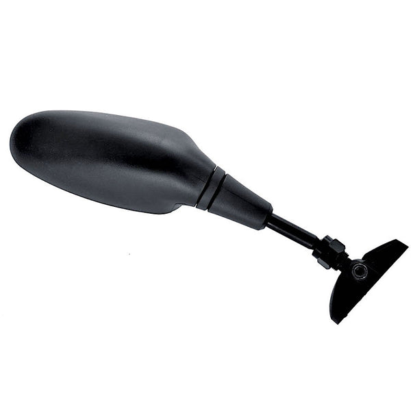 Universal faired motorcycles Adjustable length rod from 0 to 100 mm, black chromePackage: LeftColor: blackFairing attachment: M.6Dimensions: Length 170 mm height 130 mm, distance between centers 28/50Mirror: length 128 mm height 58 mm