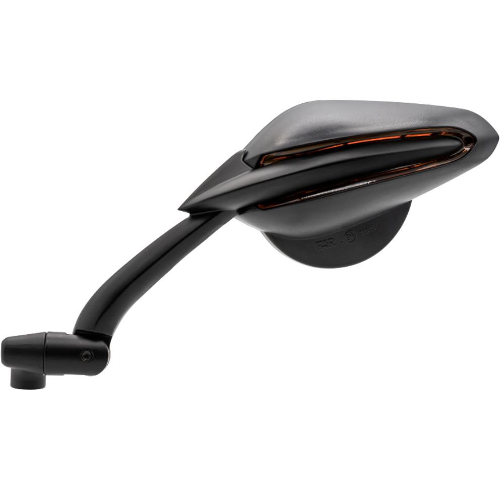The SUPER VIPER SX Cod. 7337 is the universal left-hand rearview mirror ideal for those seeking the perfect blend of modern design, compactness, and functionality. Made entirely of aluminum, it stands out for its compact, aerodynamic profile, yet fully approved for road use. The particular internal shape, slightly curved, ensures an excellent field of vision, even with a limited surface area.