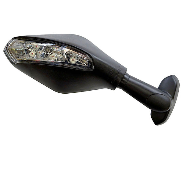 Designed to enhance the racing aesthetic of the Ducati Panigale, this left-hand mirror combines aggressive style and functionality. The foldable design with original attachment ensures perfect integration with the fairing, while the included wiring harness makes installation easy without modifications. The discreet yet highly visible integrated turn signal ensures maximum safety and compliance with road regulations.