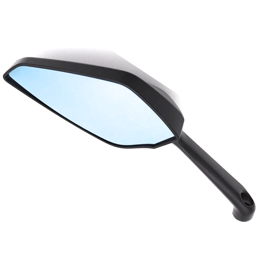 Falcon is the universal right-hand handlebar rearview mirror ideal for those who want to combine modern style , wide visibility and maximum reliability . Characterized by a geometric cap with a decisive design and a convex blue anti-reflective glass , it offers a clear and safe vision in all riding conditions.