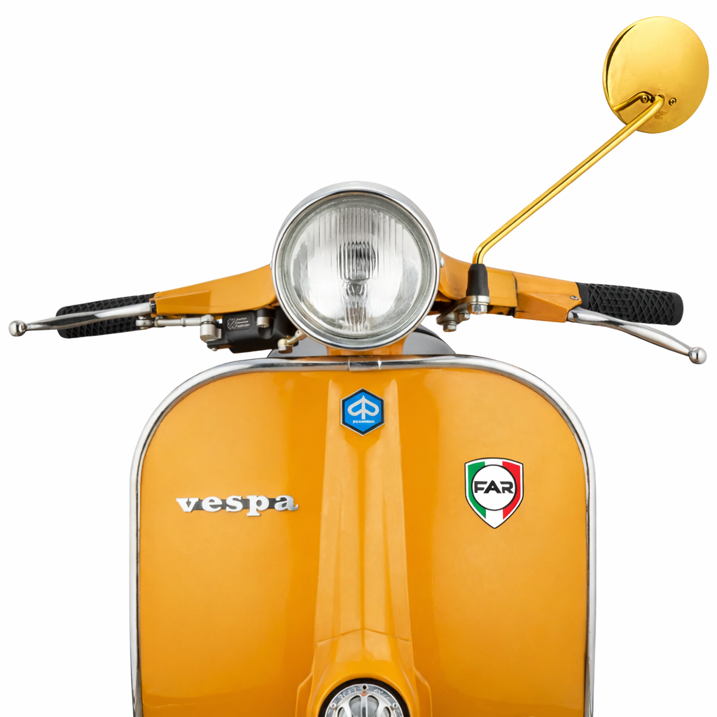 The perfect balance between retro aesthetics and modern innovation. This chrome-plated left-hand mirror, designed to enhance the style of vintage Vespas, offers a clear and stable view in all riding conditions. The premium-finish round cap harmoniously complements the vintage design, while the aluminum stem and next-generation technical solutions ensure superior comfort and functionality.
