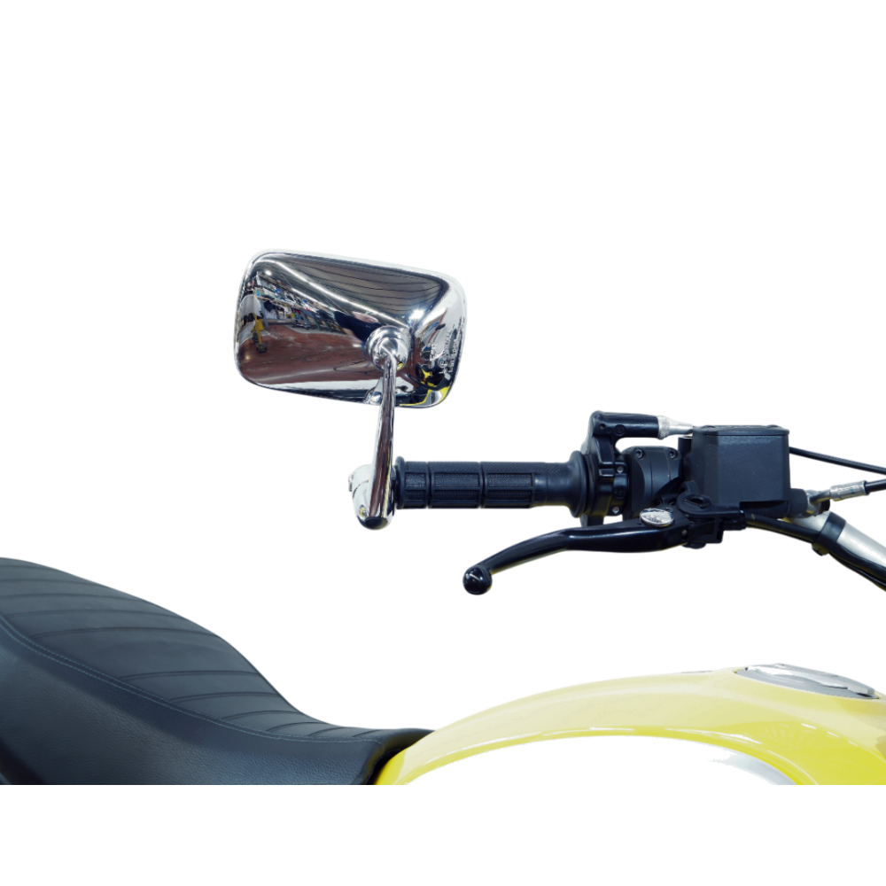 Elegante, resistente e curato nei minimi dettagli, il retrovisore Royal Classic rappresenta una scelta ideale per chi desidera un accessorio di qualità superiore. La finitura cromata, unita alla versatilità del montaggio e alla struttura in alluminio, lo rende un componente in grado di valorizzare qualsiasi moto con stile e praticità.