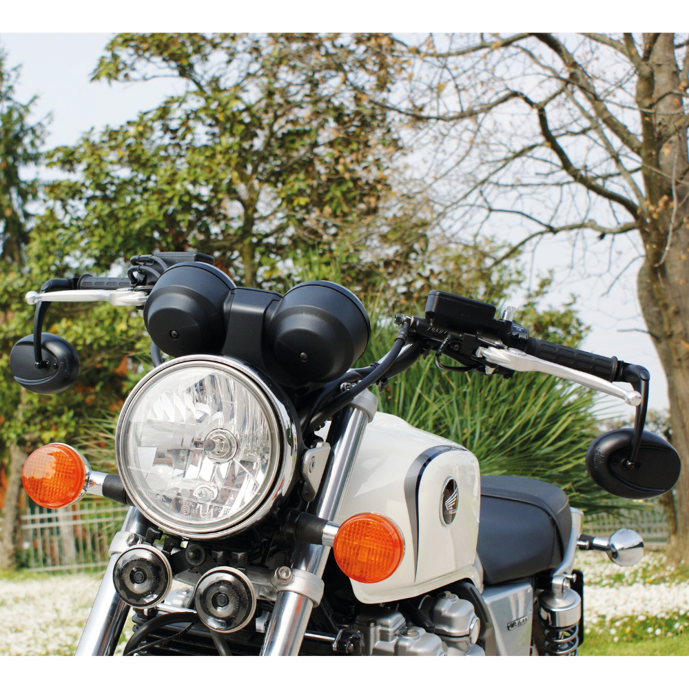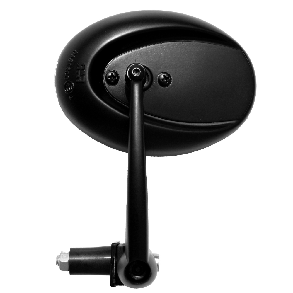 La struttura completamente in alluminio assicura robustezza e durata nel tempo, mentre la calotta nera garantisce un impatto visivo sobrio e raffinato. Il sistema di regolazione consente di ottimizzare l’angolo di visuale in ogni situazione di guida, mantenendo sempre un’eccellente stabilità. Grazie al montaggio universale a expander, il Dark Oval Black può essere installato con facilità su una vasta gamma di manubri, sia verso l’alto che verso il basso, e utilizzato indistintamente sul lato destro o sinistro.