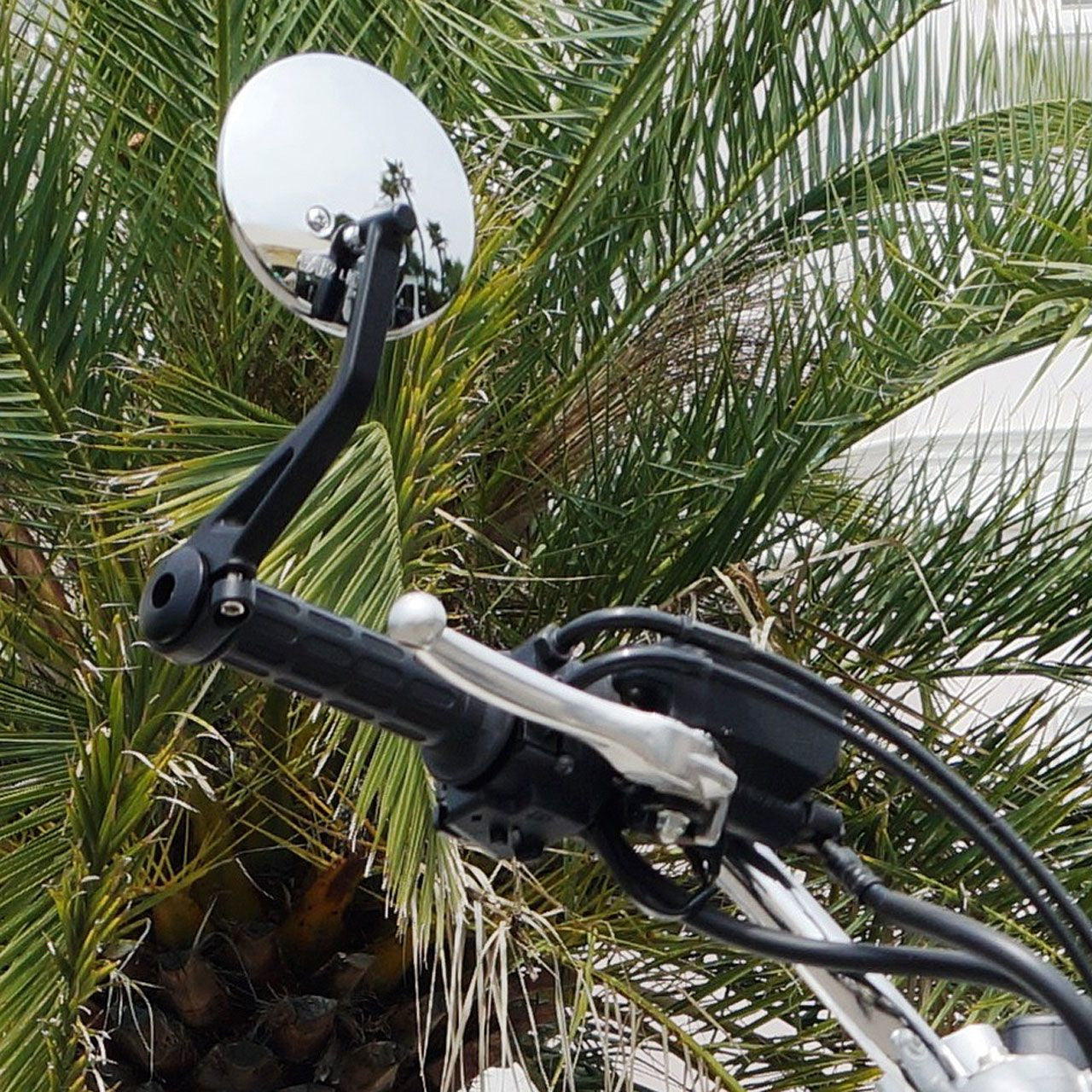 Il sistema di fissaggio con doppio espansore e vite M8 rende il montaggio semplice, stabile e universale, compatibile con manubri da Ø 18 mm a Ø 22 mm. La presa solida elimina le vibrazioni indesiderate e mantiene lo specchio fermo anche alle alte velocità. Grazie alla versatilità di montaggio, il retrovisore Black Orbit Chrome può essere installato sia a destra che a sinistra del manubrio, con possibilità di orientamento verso l’alto o verso il basso, adattandosi alle preferenze del motociclista.