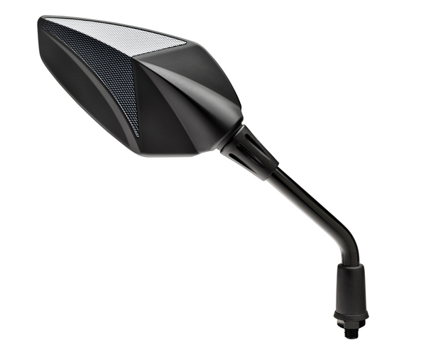 Questo retrovisore universale destro da manubrio è la scelta ideale per chi cerca uno stile sportivo e aggressivo senza rinunciare a funzionalità e qualità costruttiva. Il design affilato con inserto in carbon look conferisce un aspetto moderno e dinamico, perfetto per moto naked e sportive. La calotta è regolabile tramite un pratico meccanismo a sfera che consente di trovare sempre la posizione di visuale migliore durante la guida.